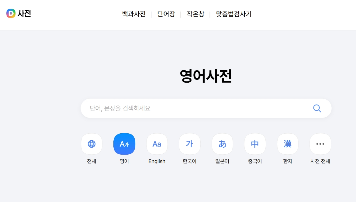 같은 계열 서비스라 헷갈릴 수 있는데요, 사용 목적이 조금 달라요. 다음 영어사전은 단어 중심, 다음 카카오 번역기는 문장 중심으로 보면 이해가 쉬워요.