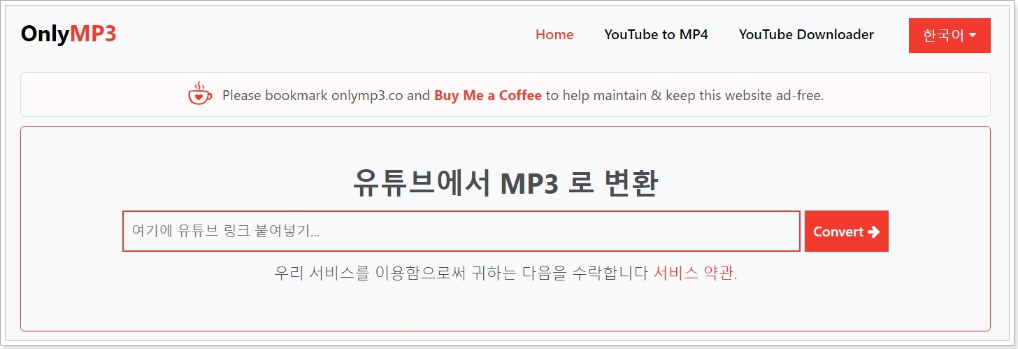 - 온리 엠피쓰리(onlymp3): 간단한 붙여넣기로 빠르게 변환 가능해요